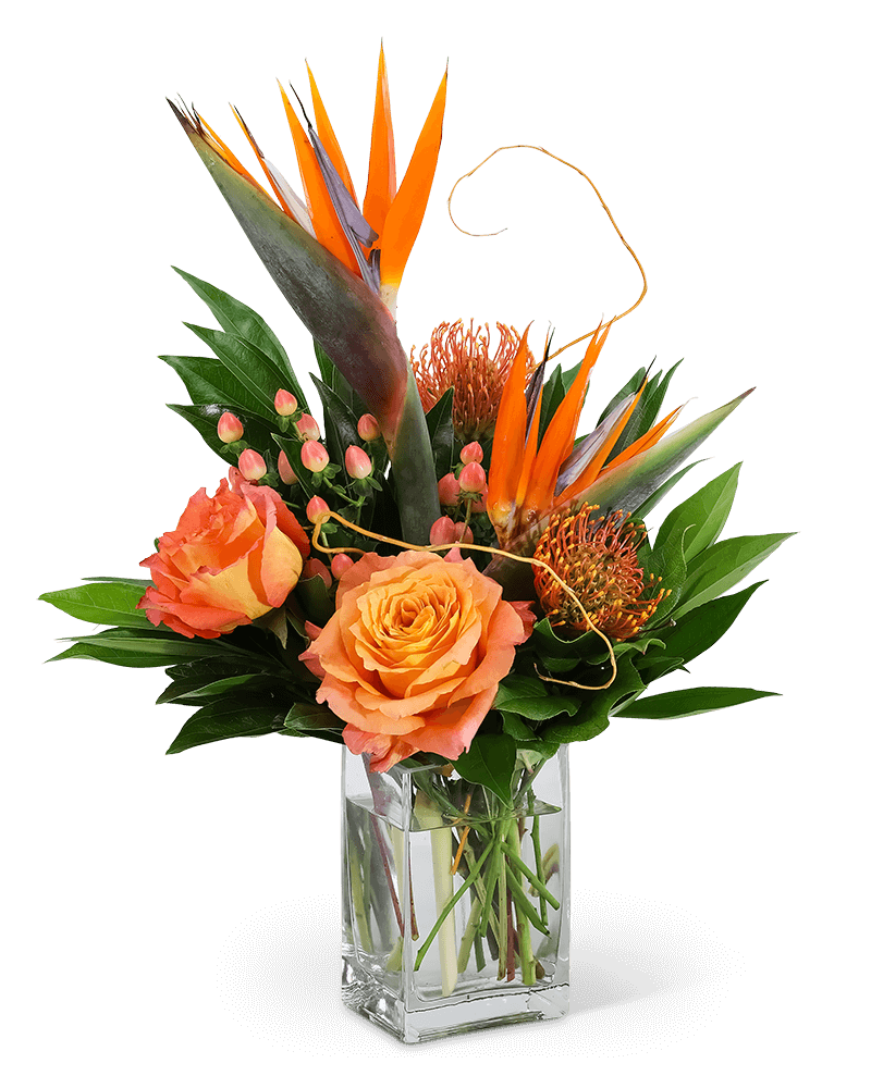 Is there anything better than a warm day in the tropics? What better way to spread warmth than to send Bali Spirit to a friend or loved one? This design features unique Birds of Paradise, pincushion protea, free spirit roses, hypericum berry, curly willow, and premium greens. All of these elements combine to create a true Bali spirit!