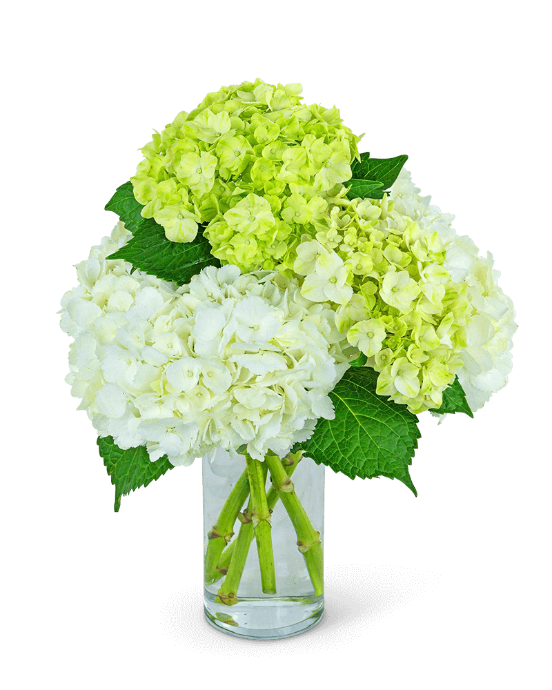 A beautiful bouquet with Hydrangeas is a classic and timeless flower arrangement for any occasion. Cashmere and Mint simply features beautiful white and green Hydrangeas in a clear vase. Our Floral Shop specializes in local flower delivery, so let us make someone's day with our beautiful Hydrangea bouquet delivered right to their front door or office.