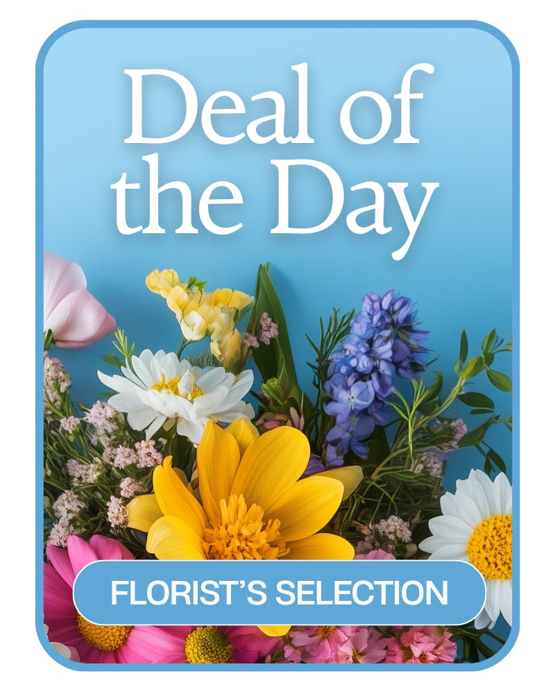 The Florist's Deal of the Day is our version of the daily special. If you're looking for the biggest value, select our deal of the day special. We pick a fresh, on-trend, design and container for your special occasion, hand-arranged, and delivered to your door.