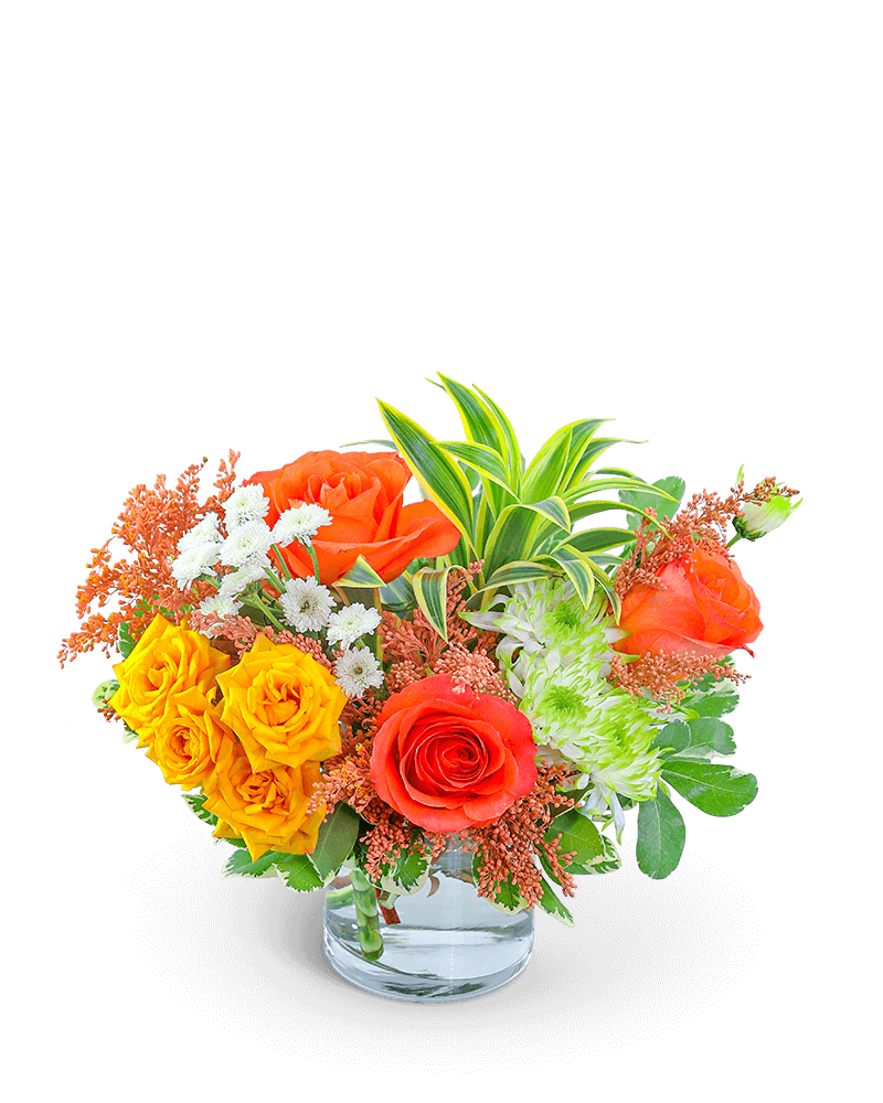 The vibrant tropical shades in this bouquet will brighten anyone's day! Key West features Roses, Mums, Solidago, and is accented with premium foliage. This arrangement will be a perfect gift for a new baby, birthday, or any occasion. The Key West Bouquet of flowers offers the perfect mix of color, texture, and aroma to make any celebration truly memorable!